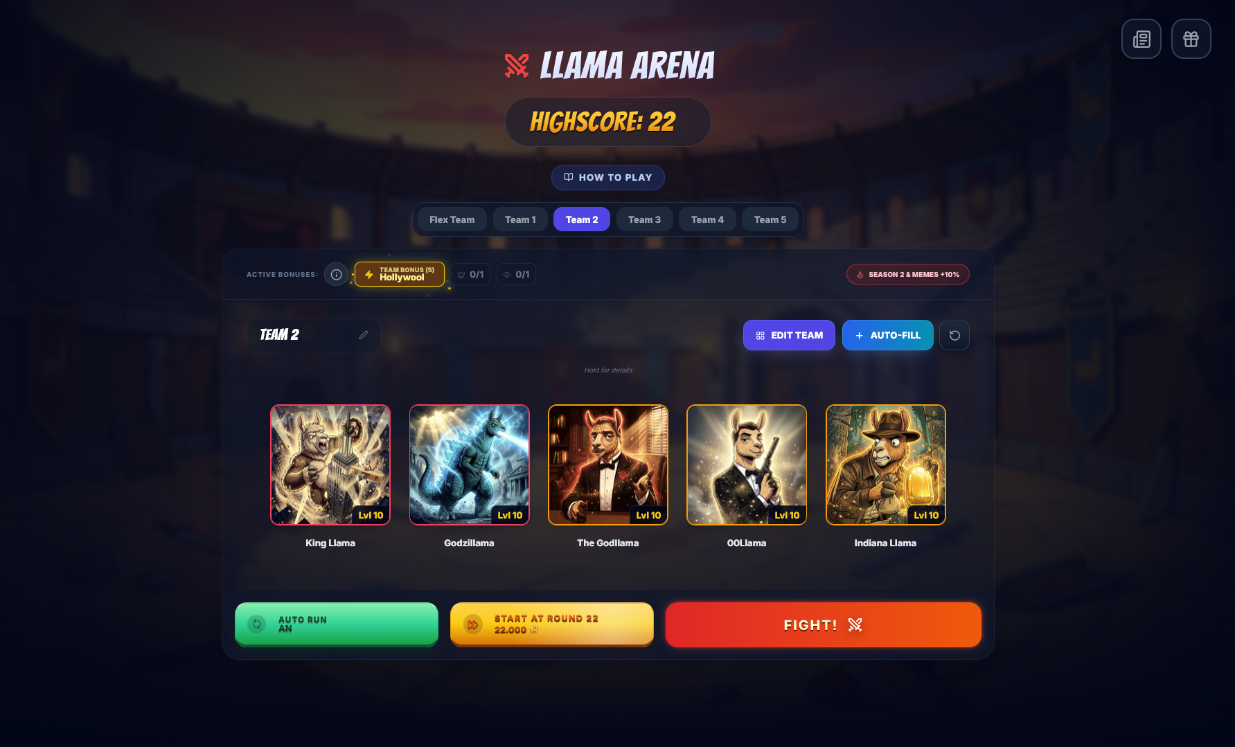 - 🔄 Tag-Team Action: The fight never stops! When a Llama gets K.O.'d, the next fighter in your 5-stack immediately jumps into the fray.